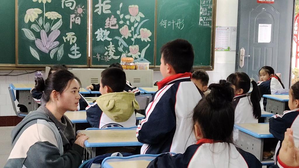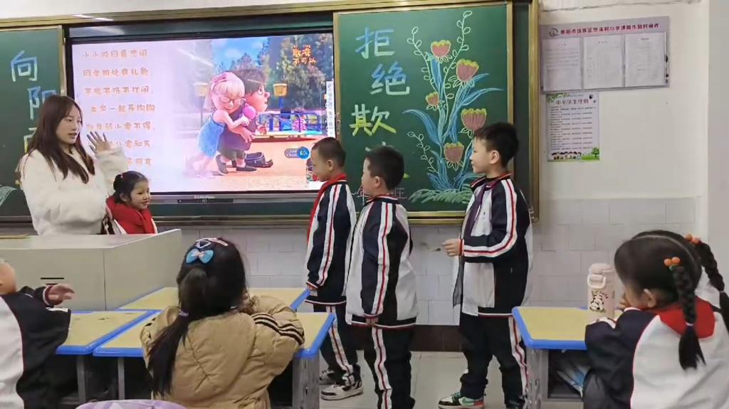 在防欺凌安全课堂,志愿者们通过结合生动的案例和巧妙的互动,向孩子们详细讲解了如何识别欺凌行为、如何应对校园欺凌,以及如何在遇到危险时保护自己,通过情景模拟、有奖问答等环节引导孩子们积极参与,帮助他们掌握实用的安全技能。