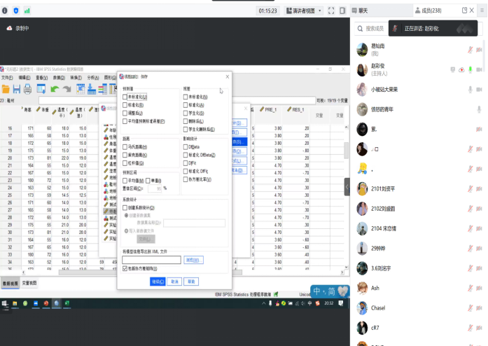 此次培训,赵彩俊老师重点介绍了如何运用SPSS统计软件对实验数据进行分析。首先,她以自身科研《地板抗滑性的主观测量》为案例引入实验数据,并结合实验数据分析步骤详细地介绍了实验基本数据描述、描述性统计、方差分析以及相关分析统计理论及SPSS操作。随后,参会成员结合实验数据紧跟着赵老师的操作进行了SPSS软件实操。期间,赵老师还由浅入深地讲解了如何运用Excel制作图表,如何解读SPSS分析结果等。