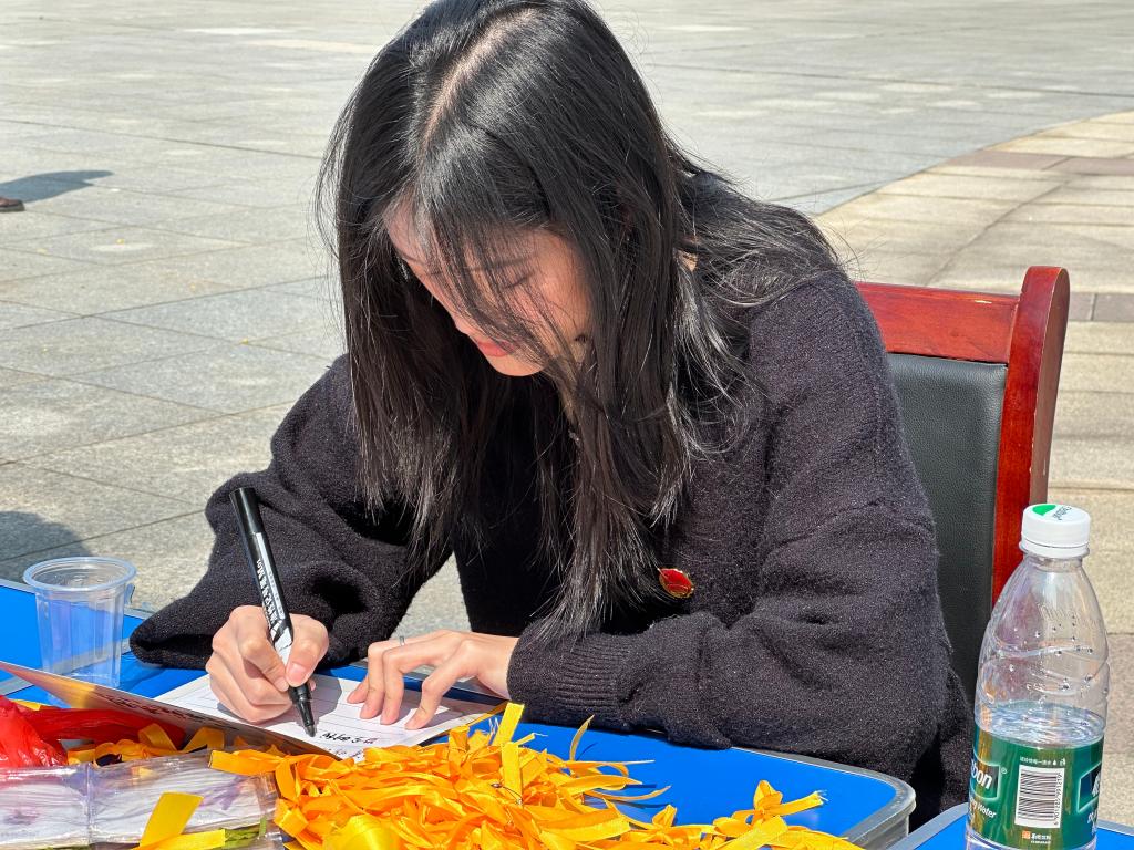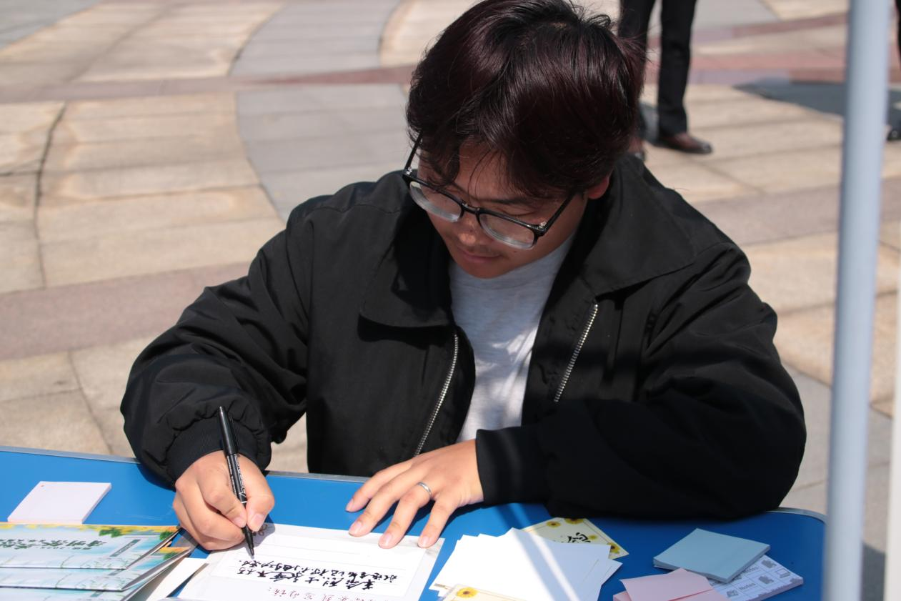 活动最同学们在“英雄,我想对你说”展区写上自己想要说的寄语卡,寄语卡上字迹飞扬,每一笔都凝聚着青春的热忱与力量。
