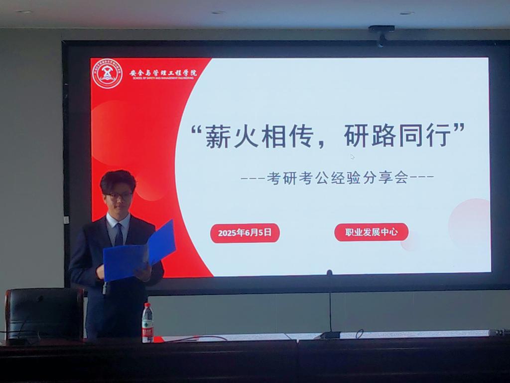 为帮助在校学生明确考研目标、掌握备考方法、增强考研信心,2025年6月5日,安全与管理工程学院在5605教室举办2025届考研考公经验交流分享会。党委副书记周丹和全体毕业班辅导员出席本次活动,25届考研上岸毕业生代表以及各年级学生代表参加本次活动。