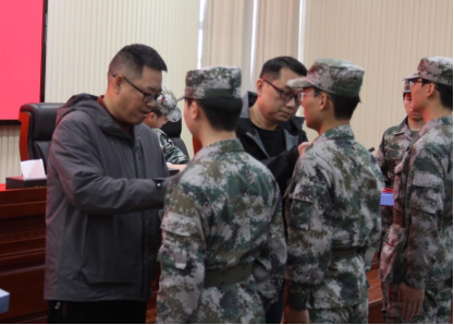 随后,陈海辉副部长宣读新一届护校队队长、副队长及指导员名单,并为新任骨干授衔、颁发聘书。在庄重的授衔仪式中,新任班长依次为新队员佩戴标志,勉励大家以老队员为榜样,严守纪律、履职尽责,以实际行动为护校队发展贡献力量。