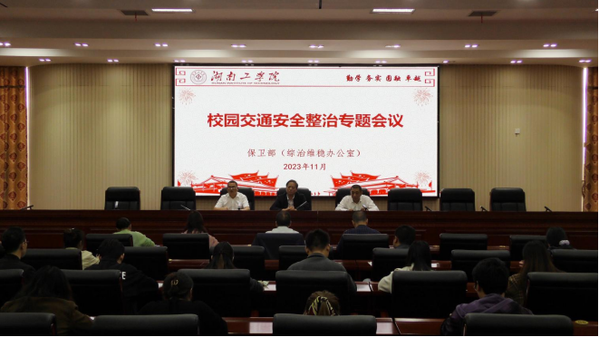 11月7日下午,校党委委员、副校长黄红卫在船山报告厅主持召开校园交通安全整治专题会议。保卫部、学生工作部主要负责人及相关人员,各二级学院党委副书记、学工办主任,全体辅导员参加会议。