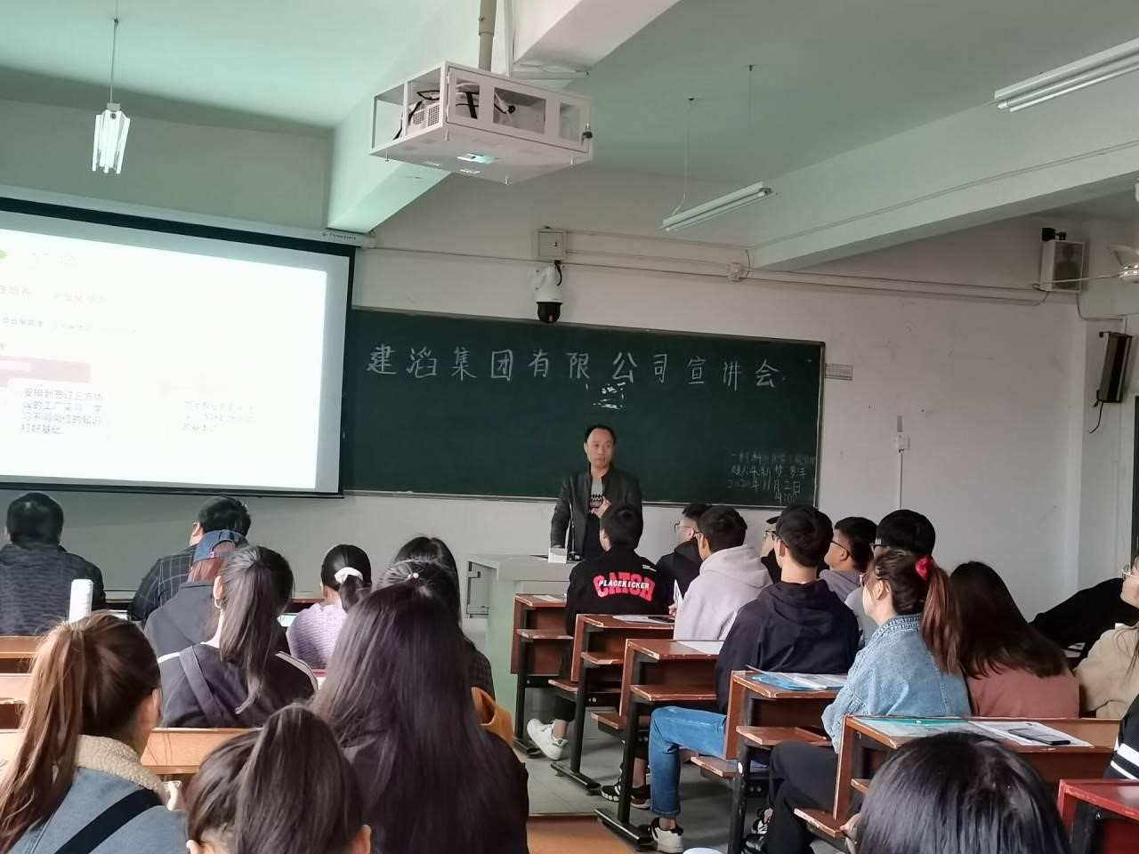 宣讲会开始后,深圳建滔集团科技有限公司负责详人细介绍了公司的历史和发展趋势。随后,介绍了公司的在相关领域优势,并对福利待遇、人才培养方案以及工作时间等情况进行了说明。最后,公司负责人鼓励毕业生们勇于尝试,并收取有意应聘的毕业生的简历进行笔试和面试。