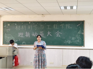 2022年9月9日,材料科学与工程学院在1301教室举行2022年迎新动员大会,学院党委书记刘湘欣、全体辅导员、新生班主任、养成辅导员和迎新工作志愿者参加,党委副书记金燕主持。