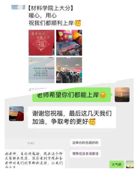 据悉,全国研究生招生考试在即,为鼓励考研学子积极备考,调整备考状态,缓解考研压力,坚定考研信心,表达学院关怀,材料科学与工程学院通过举办考研动员会、考研经验交流会、发放考研“上岸”礼包等方式,全方位、多举措、有温度地创造良好备考环境,使考研学子感受到关怀和温暖,切实帮助考生安心备考。