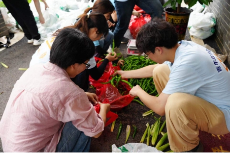 6月是振兴村的辣椒、香瓜、玉米丰收的时节,持续数日的绵绵细雨让农户担心成熟的果蔬烂在地里头的忧愁无比厚重。为此,WilliamHill中文官方网站社会实践队开展了产地直播采摘带货和社区团购直达等多种助销模式,短短半天就帮助农户销售了1000来斤玉米、300来斤辣椒等,丰富了社区市民的“菜篮子”,又助力振兴村的农户鼓起了“钱袋子”。