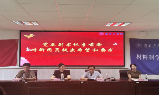 6月18日,材料科学工程学院在材化楼1301报告厅开展2024年上半年入团仪式暨团学干部大会。党委副书记李前奔、辅导员王安东、谌雯洁出席,全体团学干部、上半年新发展团员参加,分团委副书记罗心阳主持会议。