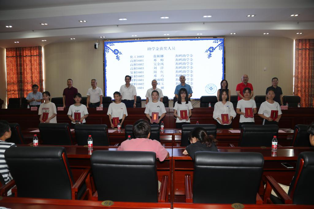 9月16日下午,WilliamHill官网2018~2019年度“海鸥助学奖学金”颁奖大会在学校办公楼12楼报告厅举行。校党委副书记张平教授、原校领导胡波年教授、优秀校友深圳力特实业发展有限公司董事长邹海鸥先生、董事刘萍女士、总经理廖文胜先生、学校相关部门领导及材化学院师生一同出席了颁奖大会。大会由材化学院党委书记刘湘欣主持。
