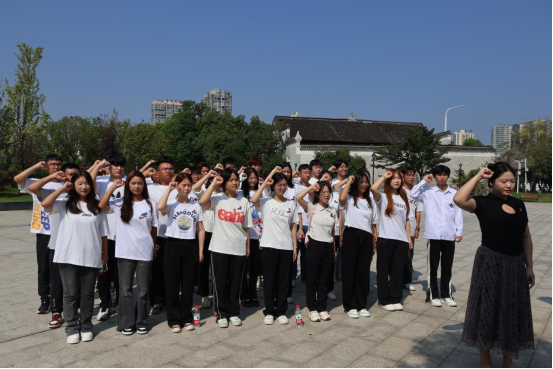 在湘南学联纪念馆群雕像前,罗心阳带领新团员进行入团宣誓、老团员重温入团誓词,誓言铿锵有力,展示了青年团员高举团旗跟党走的坚定决心、高举中国特色社会主义伟大旗帜的坚定信念和投身民族复兴伟业的坚定责任担当。