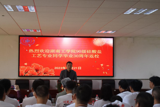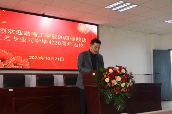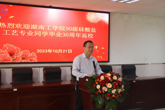 曹执令致辞,代表学校向90级硅酸盐工艺校友们表示热烈的欢迎,向校友们一直以来对母校建设发展的关心和支持表示衷心的感谢。