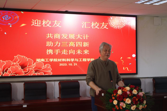 材料学院院长罗建新介绍了学院近年来人才培养、师资队伍建设、科学研究、学科发展等各项事业发展取得的新成就,就无机非金属材料工程专业获批国家一流本科专业建设点、顺利通过工程教育专业认证,以及学生在“互联网+”、挑战杯等重要赛事荣获多项国奖等向广大校友作了重点介绍。