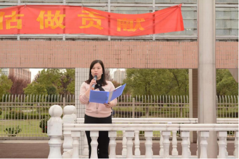 学生代表熊湘发言,号召作为新时代青年,要做好历史的接力棒,牢记初心,不忘使命,以奋斗的姿态致敬最美的青春,让青春在百年圆梦的路上绽放绚丽之花。