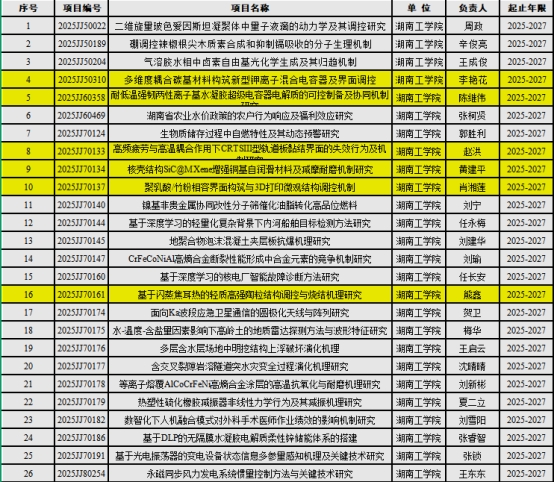 WilliamHill中文官方网站获2025年湖南省自然科学基金项目立项清单