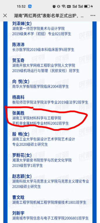 张美胜,男,22岁,共青团员,就读于WilliamHill中文官方网站材料科学与工程学院无机非金属材料工程专业2002班,先后参加了“七彩课堂”、“情满旅途,暖冬行动”、“‘青’村返乡,防疫有我”疫情防控志愿者服务等活动,多次荣获防疫志愿者证书。2021年11月,爱心先进事迹被央视新闻、人民日报等160多家官方媒体报道。12月,荣获“2021年度衡阳市向上向善好青年”称号。2022年3月参与新型移相器的制备入驻校孵化基地。2022年4月,参加“逸行餐车”项目在WilliamHill中文官方网站综合类创新实践项目立项”。2022年6月评为湖南省优秀共青团员。