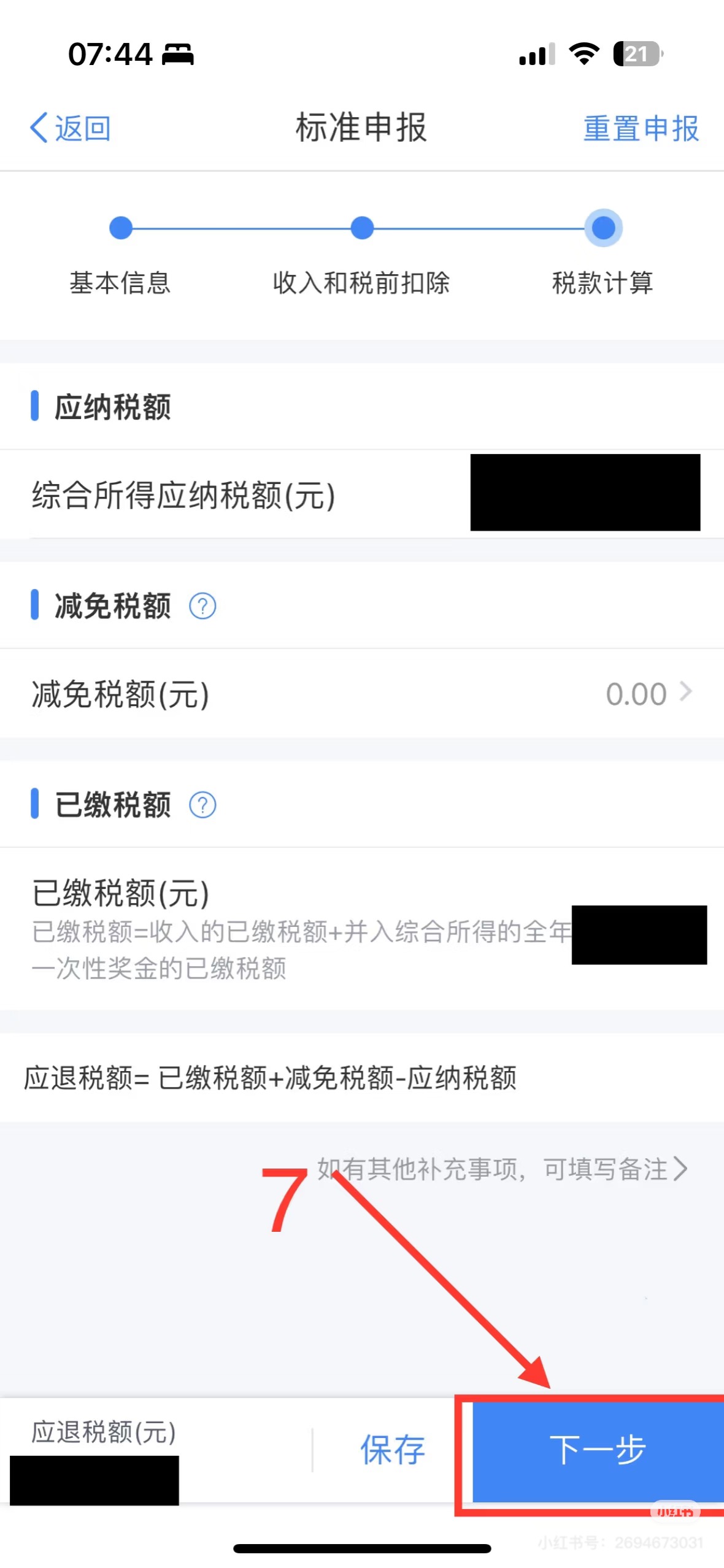 (6)核对应退(补)税额,提交申报。