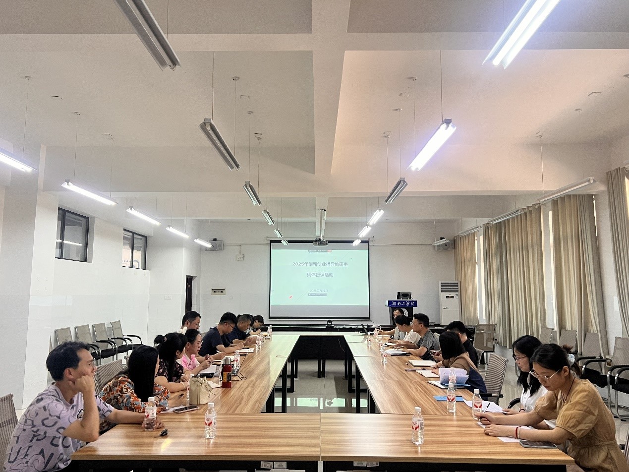 为深入贯彻落实湖南省"七个一"创业政策,深化创新创业课程改革,提升教学质量,7月7日下午,创新创业指导教研室在数理楼102会议室举行2025年集体备课活动。活动采用线上线下同步模式,教研室主任阳彦主持,教研室27名专兼职教师全员参与,创新创业教育中心主任王小兵、副主任肖登峰出席会议并作指导。