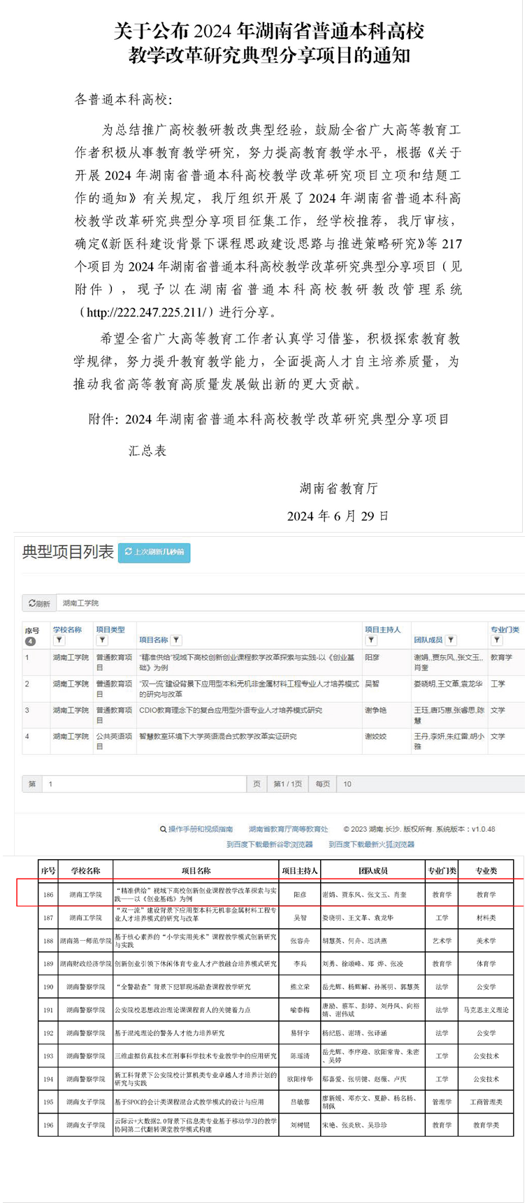 关于公布2024年湖南省普通本科高校教学改革研究典型分享项目的通知