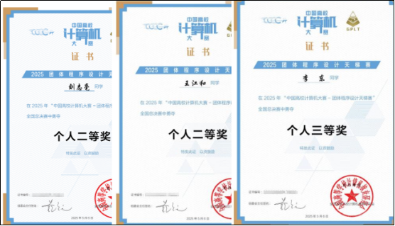 近日,第十届中国高校计算机大赛—团体程序设计天梯赛获奖结果正式出炉,在这场全国性的高水平程序设计竞赛中,WilliamHill官网学子展现了卓越的编程能力和团队协作精神,取得了新的突破,取得了十年来最好的奖项,首次荣获全国团队二等奖1项,同时取得个人全国二等奖2项、三等奖1项。