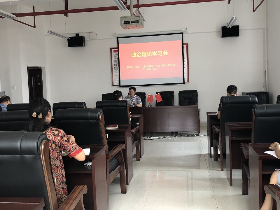 6月2日下午,组织部(党校)、机关党委、档案馆联合党支部在教学大楼509室召开理论学习会,支部书记刘金春主持会议,支部全体党员参会。