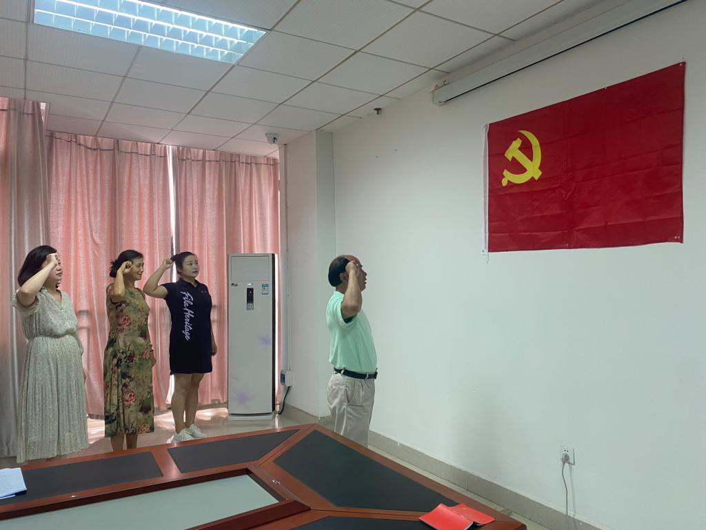 “我志愿加入中国共产党,拥护党的纲领,遵守党的章程,履行党员义务,执行党的决定,严守党的纪律,保守党的秘密,对党忠诚,积极工作,为共产主义奋斗终身,随时准备为党和人民牺牲一切,永不叛党。”全体党员面对鲜红的中国共产党党旗,佩戴党徽,整齐列队,庄严地举起右拳,重温了入党誓词。