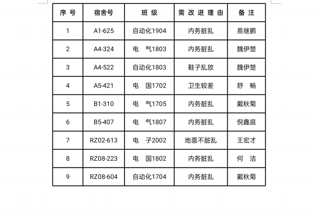 年上半年文明宿舍建设活动第十三周,我院“文明宿舍创建活动”工作组本着“公平、公正、公开”的原则,对我院全部宿舍进行了彻底检查。现将检查结果公布如下: