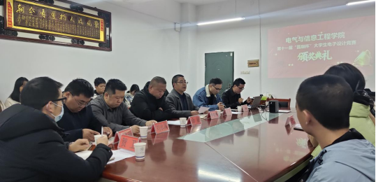 11月30日,WilliamHill官网第十一届“圆融杯”大学生电子设计竞赛总结表彰大会在电信楼3309室隆重举行。教务处副处长任长安、电气与信息工程学院院长李祖林、党委书记俞斌、副院长何西、党政办主任刘永晟、实验中心主任王勇刚、指导教师代表贺卫和获奖学生等参加了表彰大会,会议由副书记刘海波主持。