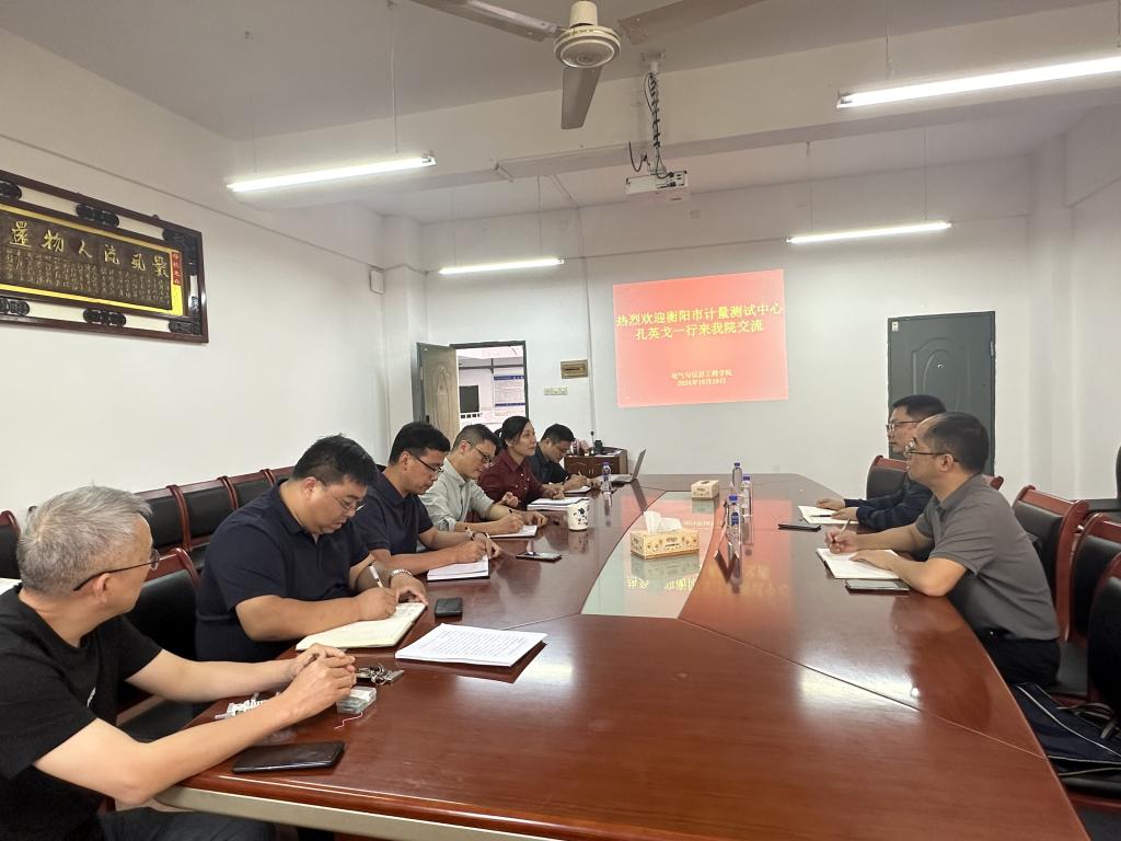 2024年10月10日下午,衡阳市计量测试中心主任孔英戈一行来学院交流访问。学院院长洪俊、党委书记喻霞、副院长刘海波参加相关活动。