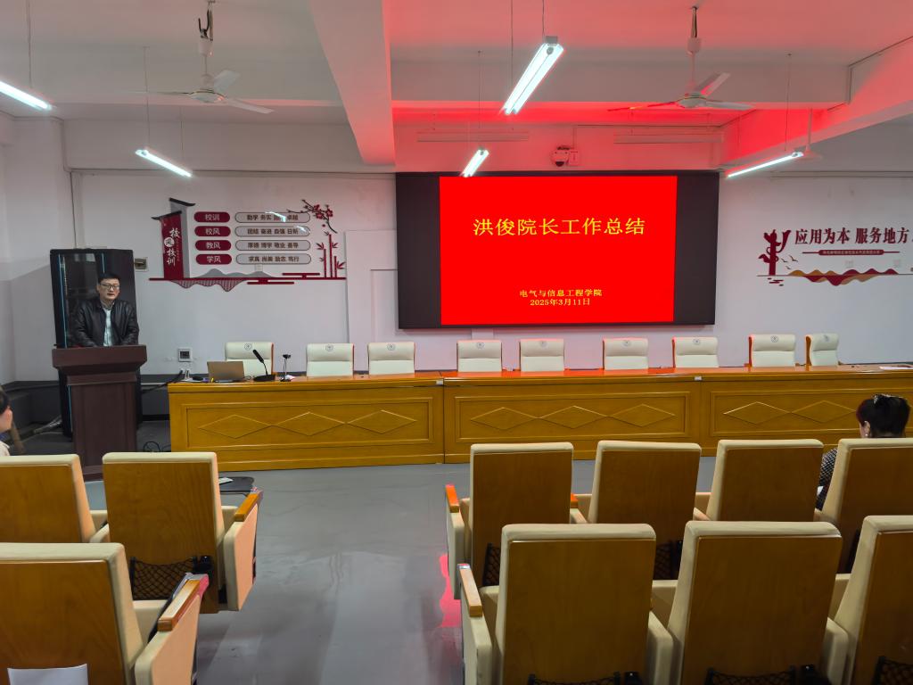 院长洪俊阐释了去年绩效分配方案,他指出学院要正视差距、坚持教学中心地位,聚焦产业,推进开放办学理念,从教学管理、学科竞赛破短板,加快学科建设,为学校申硕做出自己的努力。