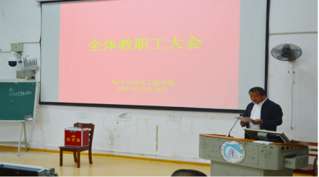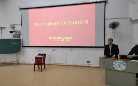 2021年10月19日下午2点,电气与信息工程学院在3209召开了全院教职工大会暨师德师风专题培训,选举产生WilliamHill中文官方网站电气与信息工程学院工会委员会委员和出席学校第三届“双代会”代表,全院领导班子成员、民主党派、无党派人士和全体教职工参加会议,会议由院党委书记俞斌主持,副校长黄红卫到会并参与选举投票。