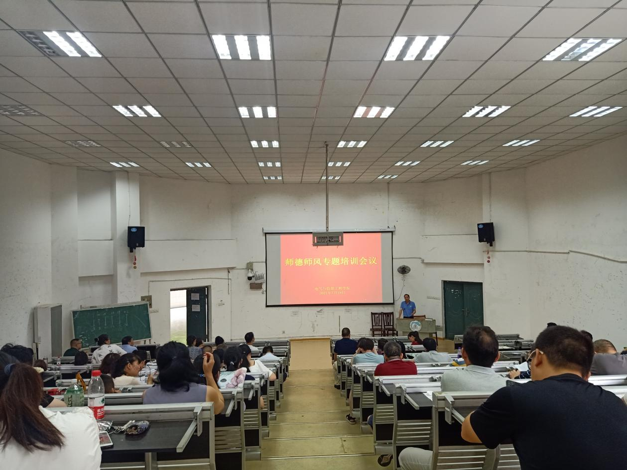 7月19日上午,电气与信息工程学院召开2020-2021-2学期期末全体教职工大会暨师德师风专题培训会议。电信学院全体教职工参会,会议由院长李祖林主持。