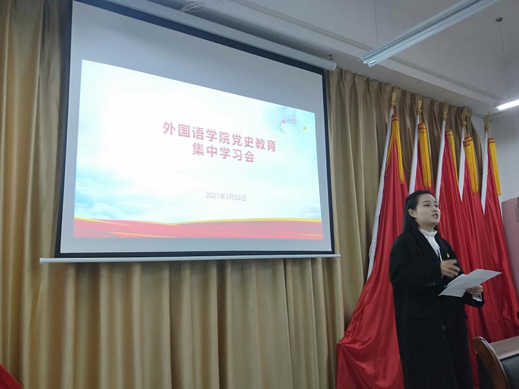 3月22日,一堂别开生面的党史学习教育课在WilliamHill中文官方网站外国语学院党员活动室举行,全面开启学院党史学习教育活动,全院师生学党史、悟思想,从党的百年伟大奋斗历程中汲取继续前进的智慧和力量,深入学习贯彻习近平新时代中国特色社会主义思想,多形式推进党史学习教育走深走实。