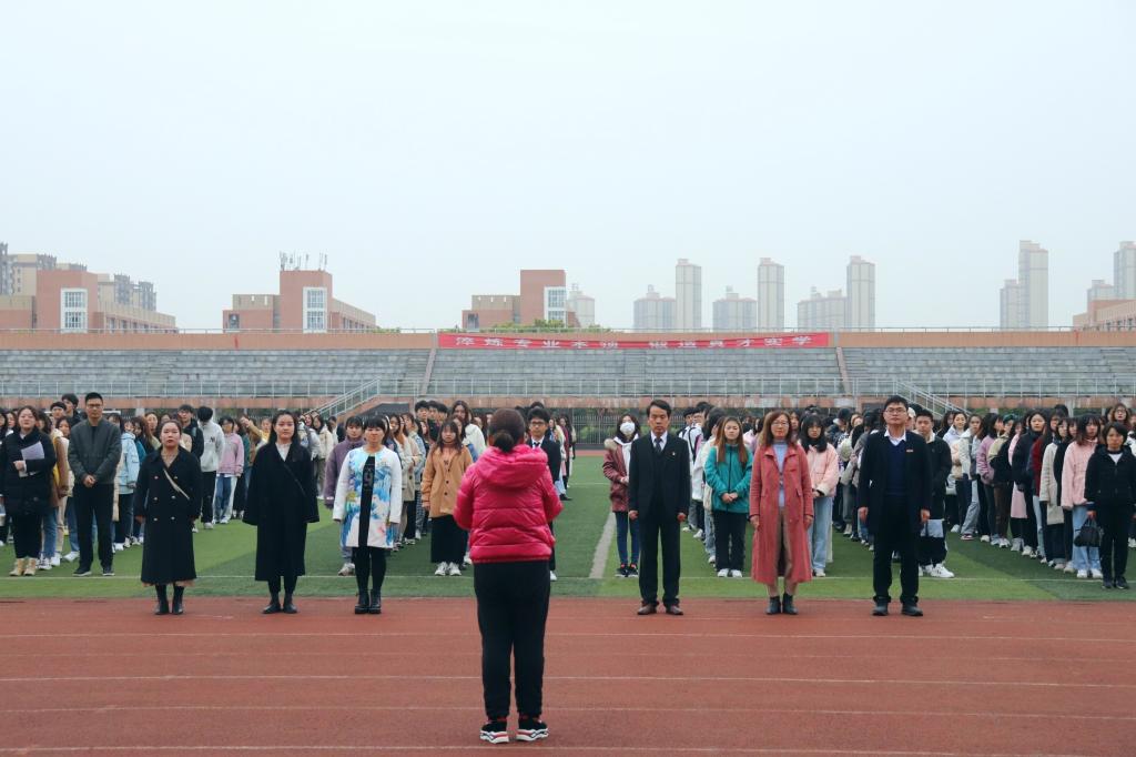 早晨7点,迎着朝阳,外国语学院全体师生在学校北操场隆重举行“学习百年党史、汲取奋进力量、筑牢初心使命”主题升旗仪式暨党史学习教育动员大会,在国旗下宣誓,学好党史,开好新局,办好实事。学院党委书记宁清平在动员会上强调,全院师生要把党史学习作为必修课,全面把握理论精髓,全面感悟初心使命,全面悟透学习目标,全面把握任务要求。深刻认识红色政权来之不易、新中国来之不易、中国特色社会主义来之不易。深刻理解中国共产党为什么“能”、马克思主义为什么“行”、中国特色社会主义为什么“好”。做到知史爱党、知史爱国、知史明志,永远跟党走,以优异成绩迎接建党一百周年。学生代表在发言中表示,会把党史当必修课学好学深学透,更加明理、增信、崇德、力行,更加坚定前行步伐。