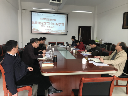 4月20日,经管学院在经管楼315会议室召开党委中心组第三次集中学习暨“学史明理”专题读书分享会,党委中心组全体成员、各党支部书记参加会议。会议由院党委书记张忠贤主持。