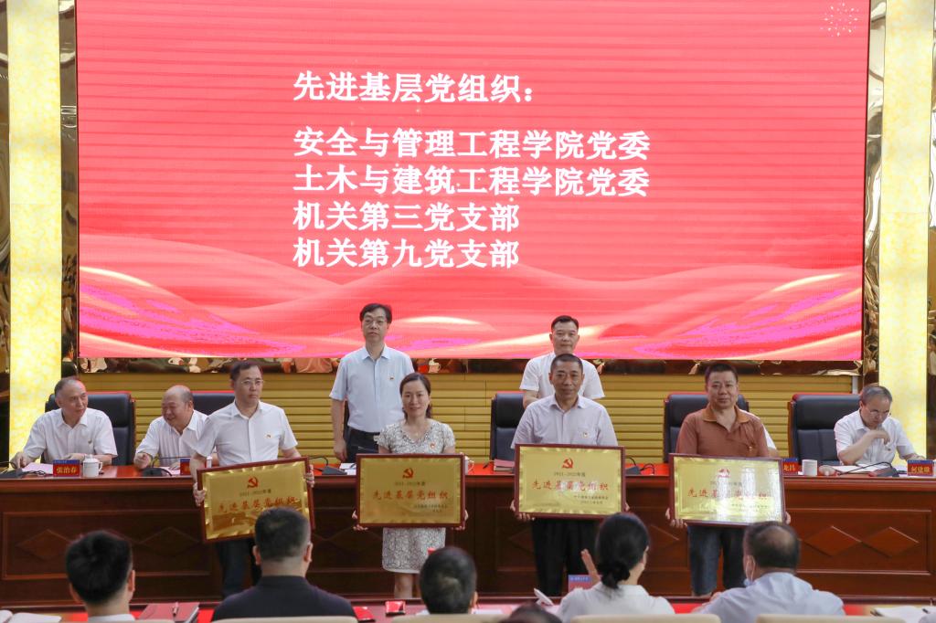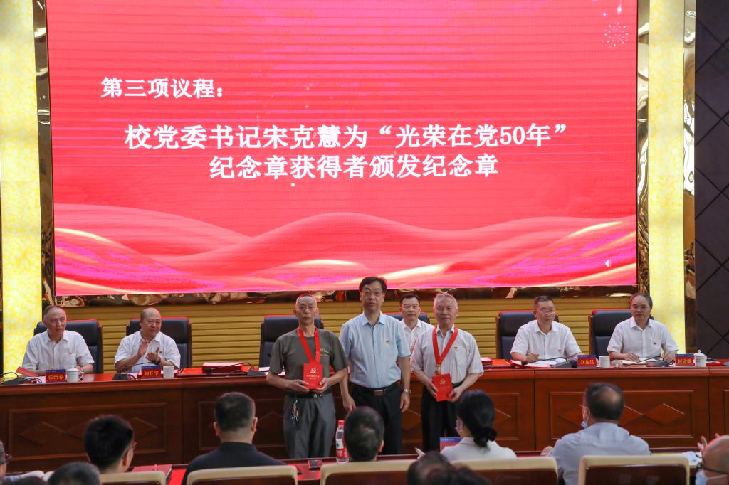大会在雄壮的国歌声中开始,会上新发展党员进行了入党宣誓、老党员重温了入党誓词,党委书记宋克慧为“光荣在党50年”纪念章获得者颁发纪念章,党委委员、副校长刘升学宣读了学校“两优一先”表彰文件,校领导分别为先进代表颁奖。