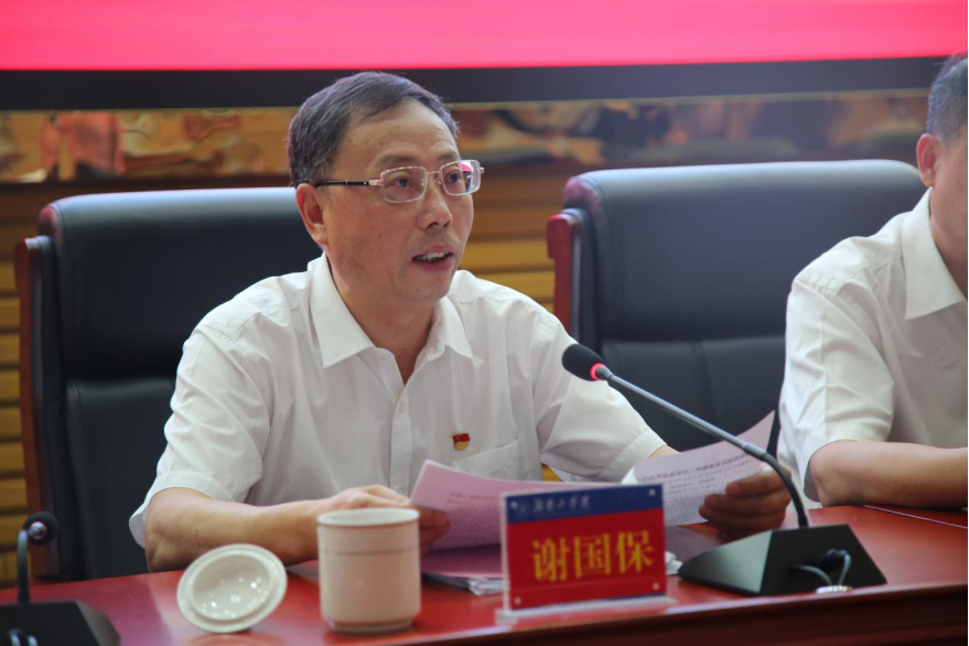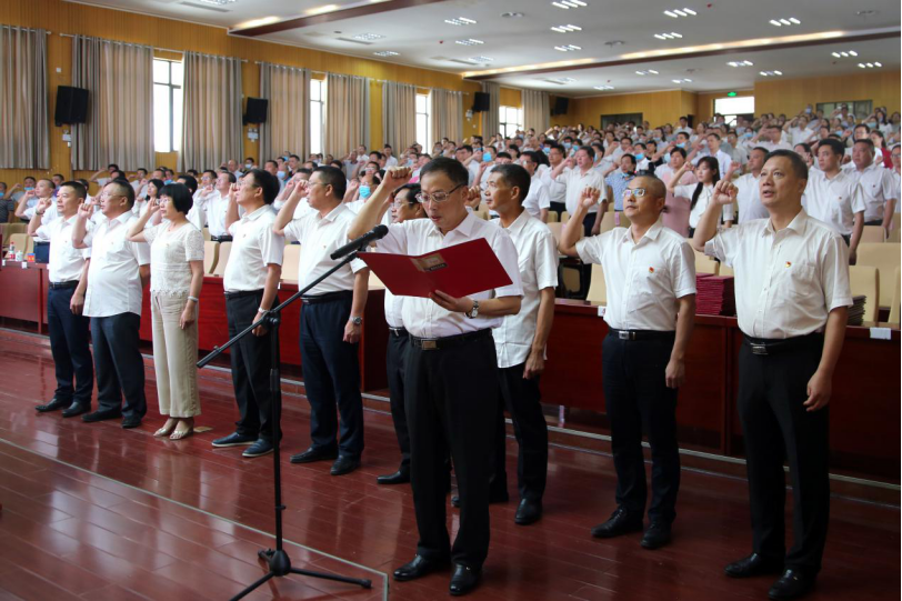 大会在庄严的国歌声中拉开帷幕,党委书记谢国保带领与会人员重温入党誓词,在党旗下庄严宣誓。