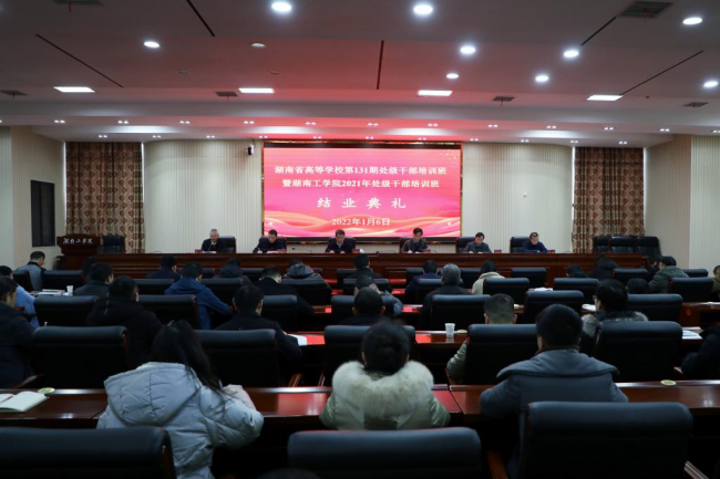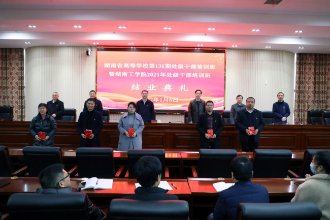 1月6日下午,湖南省高等学校第131期处级干部培训班暨WilliamHill中文官方网站处级干部培训班在学校教学大楼12楼报告厅举行结业典礼。省委教育工委副书记、省教育厅党组成员、省委教育工委党校校长王建华,省委教育工委党校常务副校长、省高校干部培训中心主任、书记刘国华,校党委书记宋克慧,校长曹执令,党委副书记张平,党委组织部常务副部长杨朗出席结业典礼。典礼由曹执令主持。