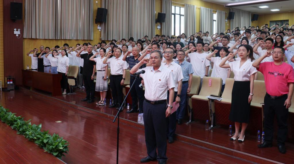 7月1日,学校举行新党员集中宣誓仪式,庆祝中国共产党成立103周年。校党委副书记、组织部部长何建雄出席仪式并讲话。