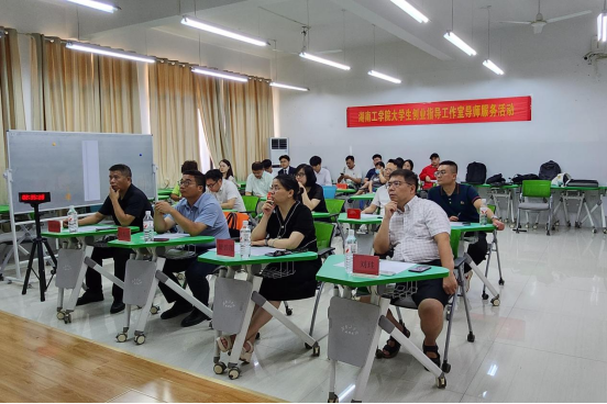 本次路演答辩会特邀衡阳工创谷副总经理王彬等五位专家担任评委。路演采用“项目展示+专家提问”的形式。共有8个创业团队参与答辩。专家从项目的创新性、市场规模、盈利性、商业模式、团队组成结构、产品竞争性等方面对项目的可行性进行了详细的指导和分析,为项目的发展提供了专业的建议。