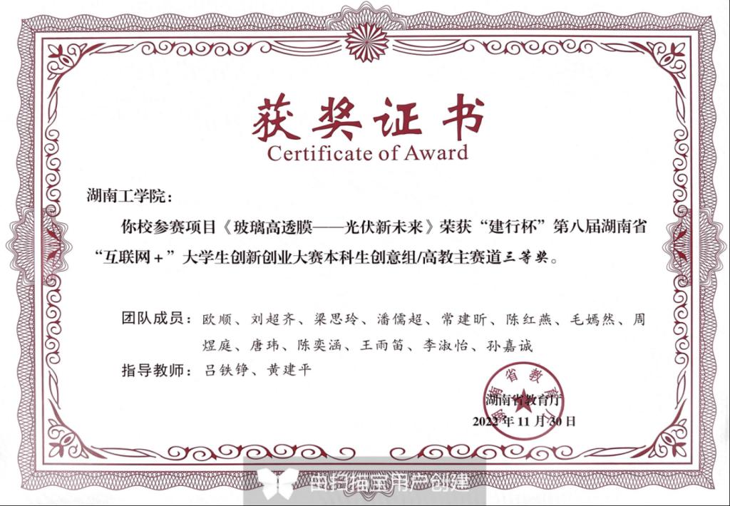 省赛三等奖:玻璃高透膜-光伏新未来