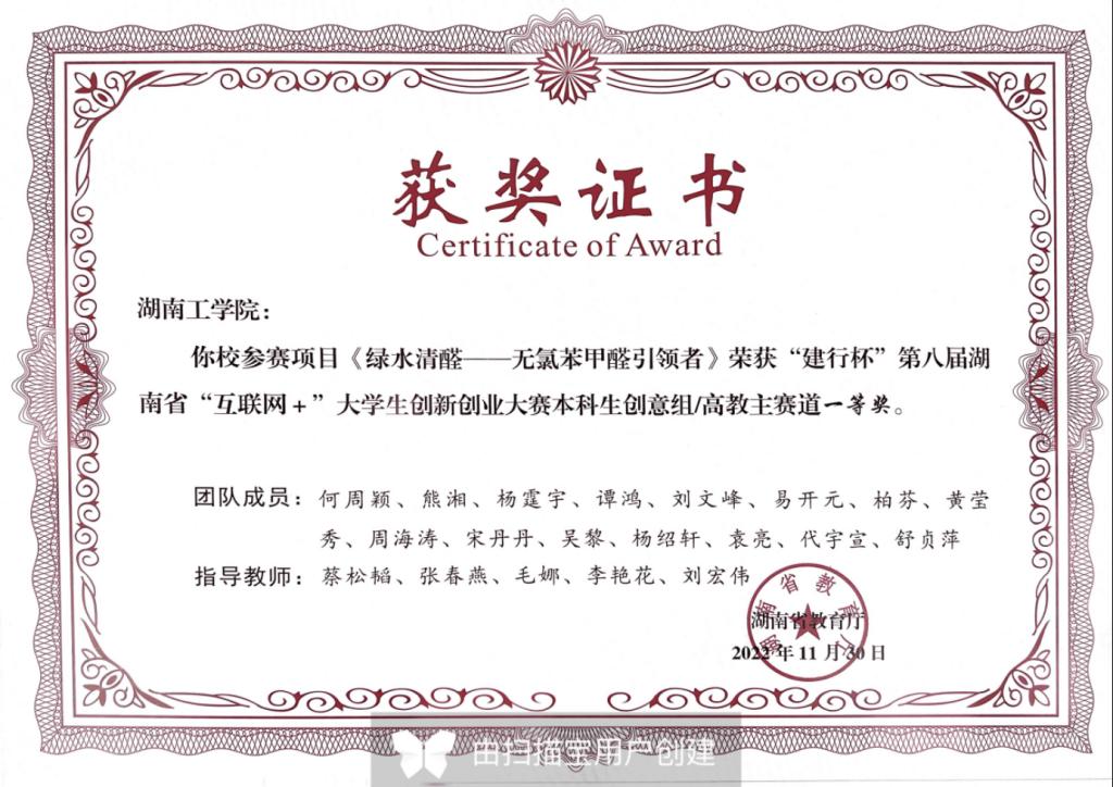 国赛铜奖:绿水清醛——无氯苯甲醛引领者