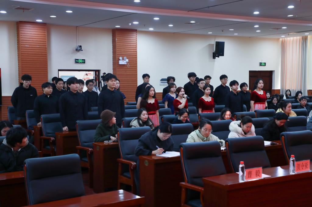 受助学生代表化工2401班宋志彬同学在发言中讲述了自己在面对经济困难时的迷茫与坚持,以及得知获得助学金后的喜悦与感恩。特别节目小合唱《爱因为在心中》将现场氛围推向高潮。