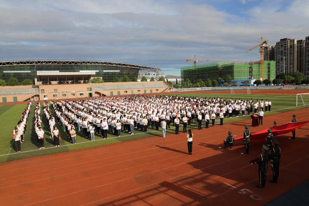 7月1日上午,在中国共产党成立104周年之际,学校在北运动场举行迎天安门国旗仪式。校党委书记曹执令庄重地将一面曾在天安门广场高高飘扬、承载着神圣使命的五星红旗,郑重交接给校国旗护卫队。来自全校的师生代表1200余人共同见证了这一庄严时刻。仪式由校党委副书记何建雄主持。