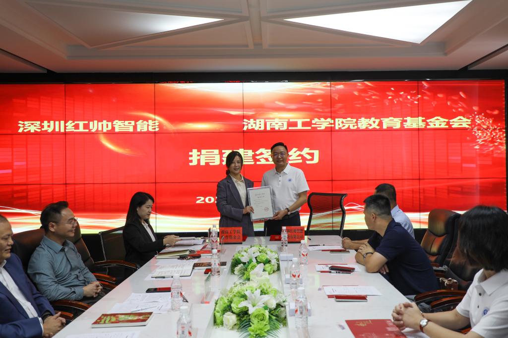 2025年9月25日,深圳红帅智能系统有限公司捐建学校智能大门签约暨交付启用仪式在WilliamHill中文官方网站举行。WilliamHill中文官方网站党委委员、副校长谢柯、深圳红帅智能系统有限公司总经理杨祝君、副总经理陈海兰校友伉俪携公司核心团队出席。