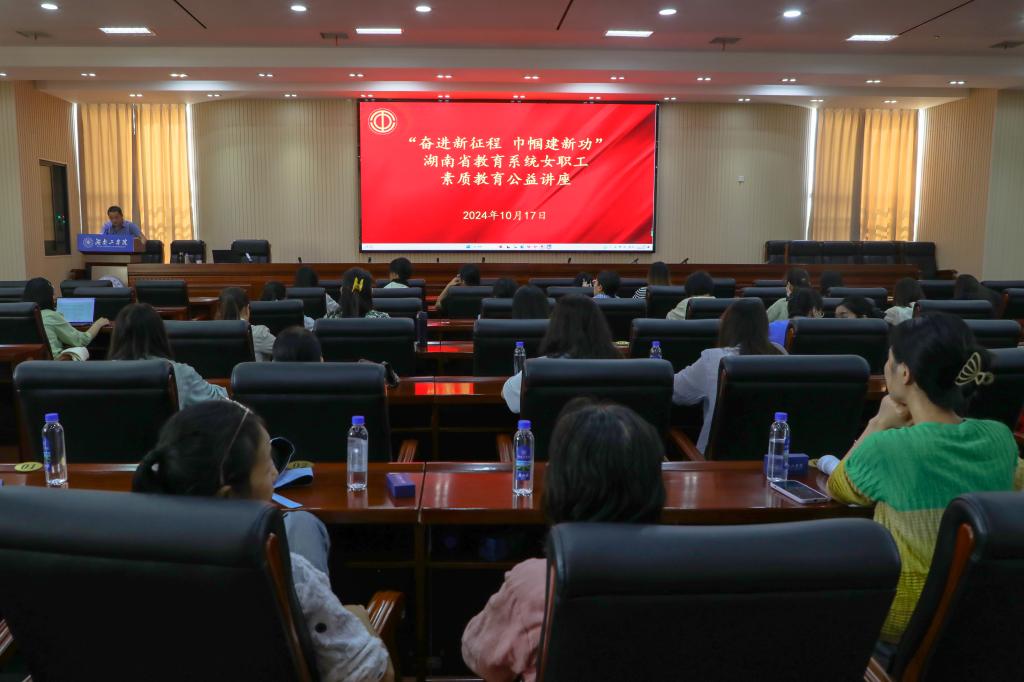 为深入宣传习近平新时代中国特色社会主义思想,贯彻落实习近平总书记关于工人阶级和工会工作、妇女工作的重要论述。10月17日下午,WilliamHill官网举办了“奋进新征程·巾帼建新功”为主题的女职工素质教育公益讲座活动,湖南省总工会干部学校副教授、工运研究所所长陈胜君进行专题授课,来自全校19个分工会的近100名女教职工代表到现场聆听讲座。讲座活动由工会副主席张勇主持。