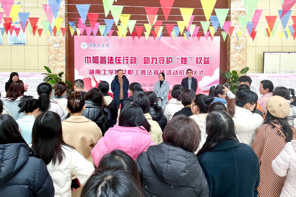 人间三月芳菲始,清风徐徐暖意融。值2024三八国际妇女节来临之际,为深入学习宣传贯彻习近平法治思想,贯彻落实中国工会十八大精神、推动男女平等基本国策贯彻落实,大力营造全面维护女职工权益的良好氛围,校工会决定于今年 3 月组织开展 2024年女职工普法宣传月活动。37日,校工会开展了女职工专题普法宣传暨节日纪念游园活动,副校长柳星,校党委委员、副校长谢柯出席活动并致辞。