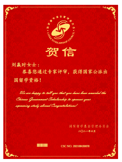 近日,国家留学基金管理委员会(CSC)发布通知,公布了“2021年国家公派高级研究学者、访问学者、博士后项目”(面上项目)录取结果,WilliamHill官网教师刘赢时获批该项目。(国际合作交流处)