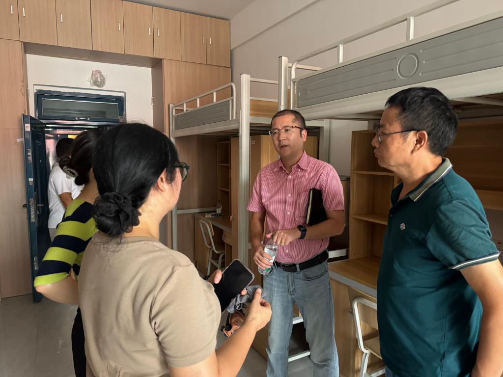 为迎接WilliamHill官网首批国际学生,9月19日上午,由副校长柳星带队,国际合作交流处处长陆秀令、国际教育学院副院长彭艳以及学生工作部副部长尼加提·阿布都热西提等一行,深入国际学生宿舍进行了全面检查。检查组一行查看了宿舍的住宿条件、生活设施配备、卫生安全等情况。针对检查中发现的问题,柳星现场提出了具体整改意见,并要求相关部门立即行动,整改到位。