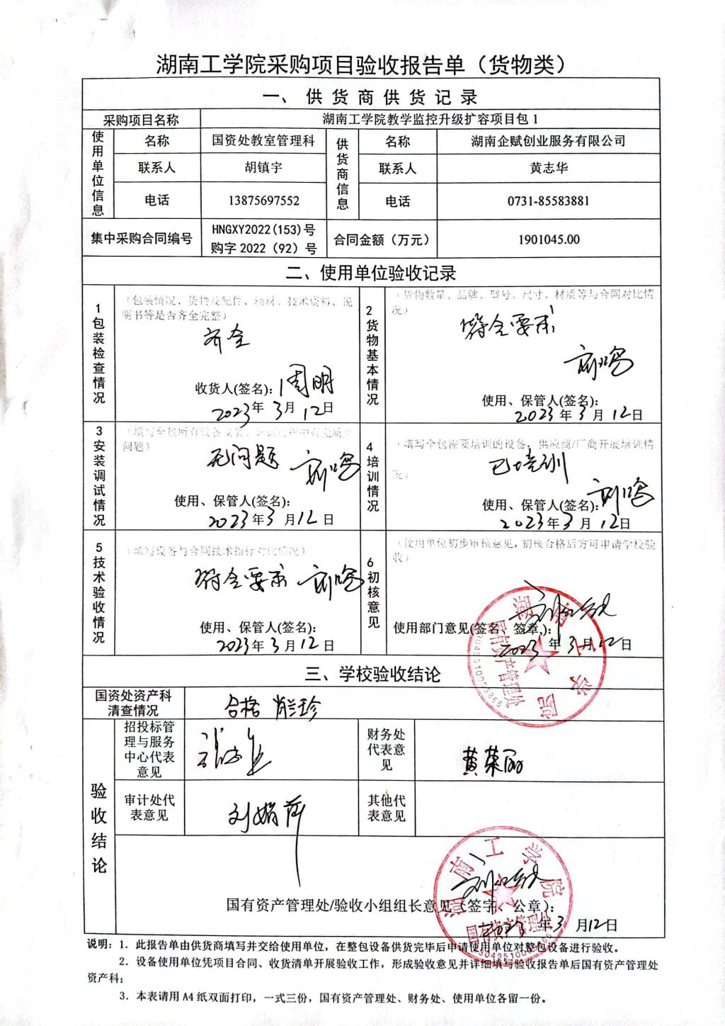 2023年4月关于HNGXY2022【153】号 购字2022【92】号采购项目验收情况公告