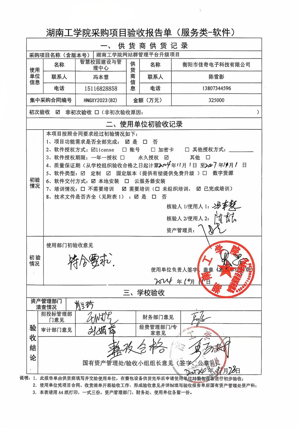 2024年10月关于HNGXY2023【82】号 购字2023【40】号采购项目验收情况公告