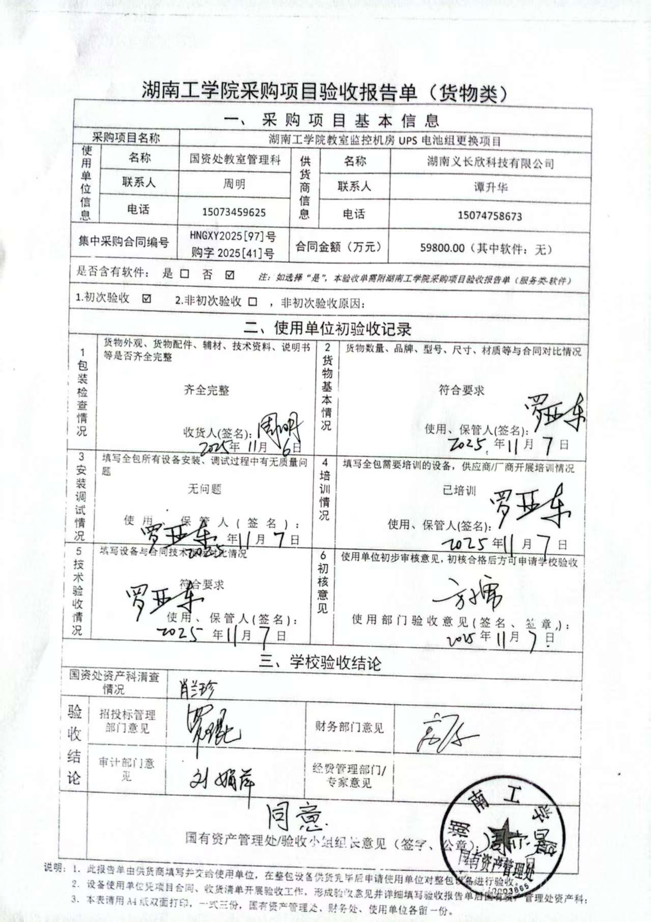 2025年11月关于HNGXY2025【97】号 购字2025【41】号采购项目验收情况公告